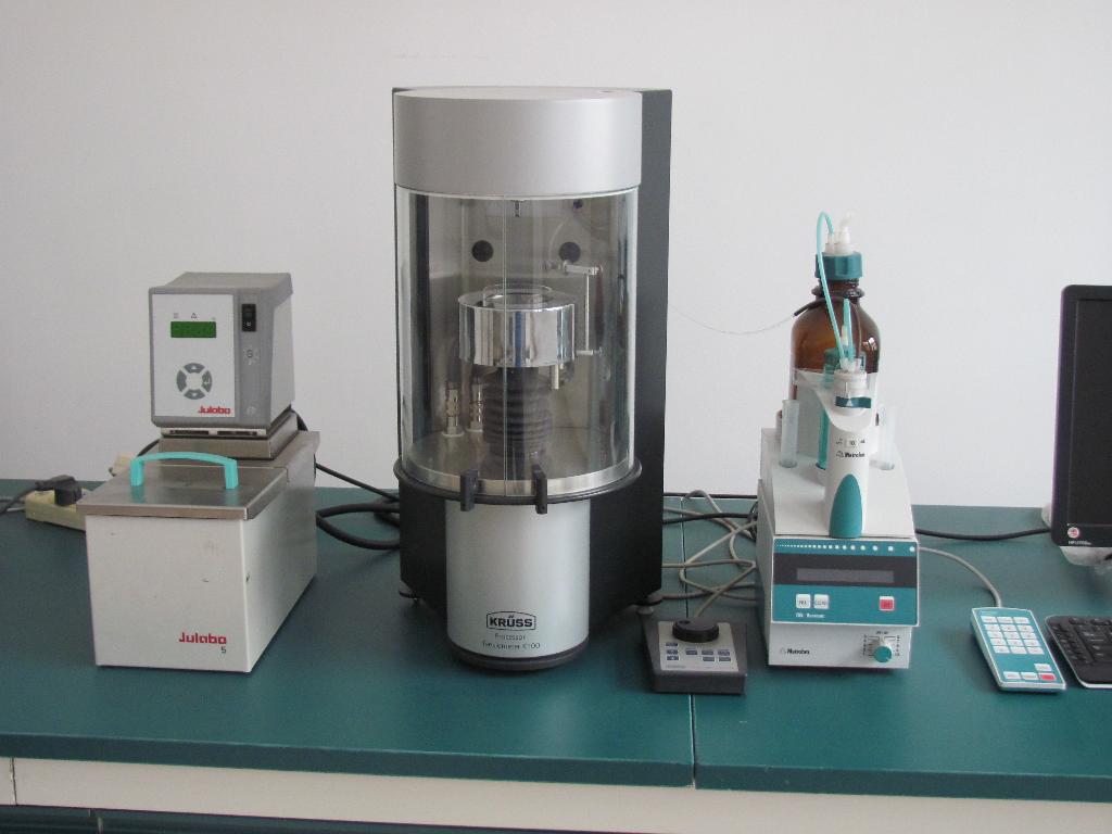 大型仪器设备 设备名称: 自动界面张力仪 型 号: K100 产 地: 德国 价 值: 38万元 购置年份: 2008年12月 主要技术参数: 1. 张力测量范围:2~1000nN/m; 2. 张力测量范围精度:±0.001 nN/m; 3. 温度范围:-10~100℃; 4. 温度精度:≤0.1℃; 5. 位置检测精度:0.1μm。 应用领域: 适用于测量液体及液体溶液的表面张力,不同密度且不互溶的两种液体之间的界面张力等。可用于表面活性剂、油墨、采油助剂等的性能测试。
