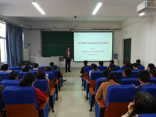 为了帮助我院广大教师深入了解国家自然科学基金项目申请,提高项目申报的成功率,11月26日下午,我院特邀兰州大学国家杰出青年基金获得者张浩力教授在科学校区化工楼218室做了题为 “国家自然基金申请”的报告,我院全体教授、副教授和博士聆听了此次报告。