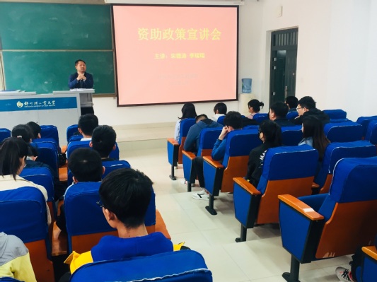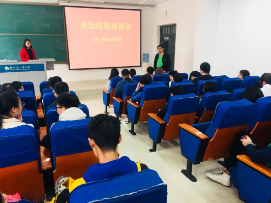 为进一步做好学生资助政策宣传工作,让学生知晓并了解家庭经济困难学生资助政策,保障贷款毕业生权益,根据学院学生资助工作计划,黄色小说 于4月2日在化工楼218教室开展“两节课” 资助政策宣讲活动。党总支副书记宋德涛老师、负责资助工作的李瑞瑞老师、毕业班辅导员以及2019届贷款毕业生参加了此次活动。