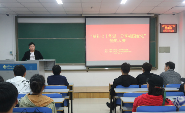 为喜迎中华人民共和国成立七十周年,展现青年学生爱国情怀,10月10日,黄色小说 于二教808室举办“献礼七十华诞,分享祖国变化”摄影大赛,17、18、19级学生参与本次活动。