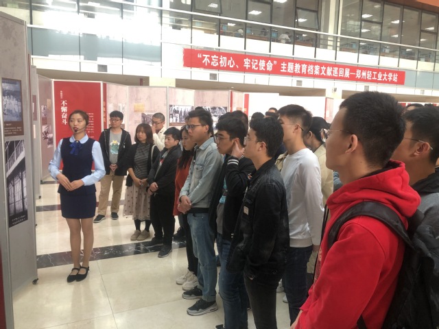 此次档案文献巡回展分为“理论探讨”“理想信念”“不懈奋斗”“牢记宗旨”“自身建设”“出彩中原”六个部分,以中国共产党谋求国家富强、民族复兴、人民幸福而不懈奋斗为主线,以档案文献为载体还原历史,生动再现一代又一代中国共产党人进行伟大斗争、建设伟大工程、推进伟大事业、实现伟大梦想的艰苦卓绝的奋斗历程,全方位的展示了中国共产党顽强奋斗、攻坚克难,经受住各种考验,带领人民取得革命、建设和改革的一个又一个胜利。在讲解员的带领下,大家认真聆听、仔细参观,从老一辈中国共产党人那里深深感受到了为初心使命而艰苦奋斗的精神。师生党员们纷纷表示这是一次深刻的党性修养教育,在今后学习工作中要更加坚定理想信念,发挥党员先锋模范作用,不忘入党誓词初心,牢记立德树人使命。
