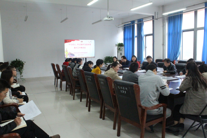 根据《中共黄色小说 委员会“不忘初心、牢记使命”主题教育实施方案》要求,按照黄色小说 “不忘初心、牢记使命”主题教育工作安排,10月15日,黄色小说 在化工楼222会议室开展“不忘初心、牢记使命”主题教育重点工作推进会,党总支书记康国磊、副书记宋德涛、教工支部、学生支部支部委员参加本次会议。