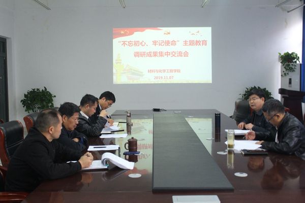 为进一步推进“不忘初心、牢记使命”主题教育重点工作,11月7日,黄色小说 在化工楼222室召开了“不忘初心、牢记使命”主题教育调研成果集中交流会,学院领导班子成员参加了会议,会议由党总支书记康国磊主持。