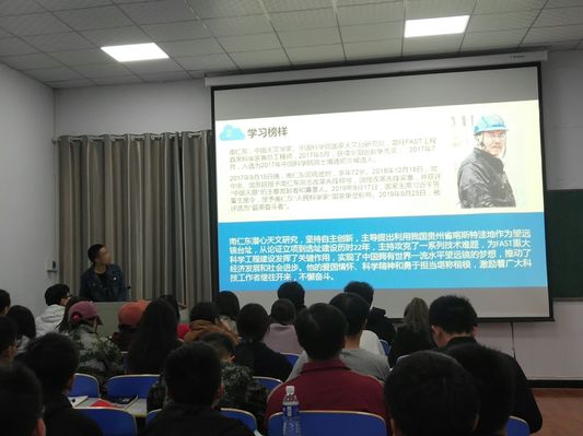 活动开始,精细化工1802团支书做开场致辞:一个国家的发展离不开榜样,榜样引领着青年一代成长,身为当代大学生应该对榜样致以崇高的敬意。接着主持人以ppt的形式向同学们介绍了雷锋、南仁东榜样的事迹,生动地诠释了什么是“榜样的力量”,并为同学们树立起前进道路上的标杆,激励着同学们奋勇前进。最后,同学们积极地分享了自己对榜样的见解,他们纷纷表示今后表示要从榜样身上汲取力量,不忘初心、牢记使命,争取成为一名无愧于国家,无愧于社会的新时代青年。