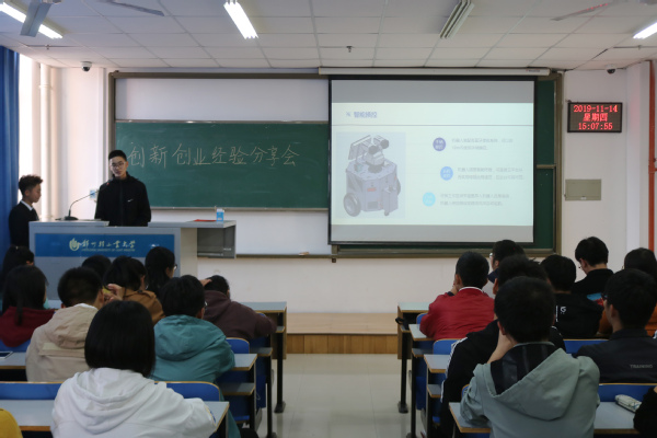 活动伊始,主持人介绍了各个创业团队的基本情况,并邀请3位项目代表分享自己创新创业感悟,浩宇团队代表袁楷介绍了环保Uber-智能检测卫士的应用前景并讲述参加“互联网+”省赛的比赛经历;河南省领创仪器设备有限公司代表张洋介绍了领创仪器设备,分享了他们在比赛中的收获,同时还对“创新”与“实践”进行了阐述;环保追梦人团队代表丁国庆从项目的发展前景进行阐述,重点分享了参加大学生“挑战杯”国赛的所见所闻。各项目代表们在创新创业方面的成功经历让同学们感触颇深,他们结合亲身经历,耐心讲解并给予了同学们许多中肯的建议,同学们对创新创业有了更深刻的认识并对创新创业产生了浓厚的兴趣,并表示要在接下来的专业学习中更加注重实验技能,不断提高自身的创新创业意识与能力。