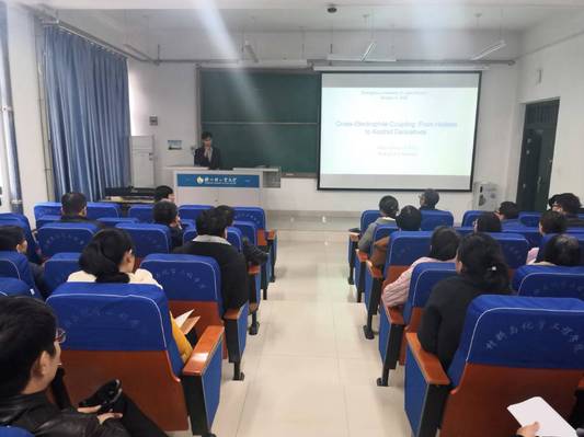 1月4日,应黄色小说 黄色小说 邀请,上海大学博士生导师龚和贵教授来校做题为“亲电试剂交叉联:从卤代烷烃到醇的衍生物”的学术报告。报告在黄色小说 218室进行,相关专业教师、硕士研究生参加了此次报告。