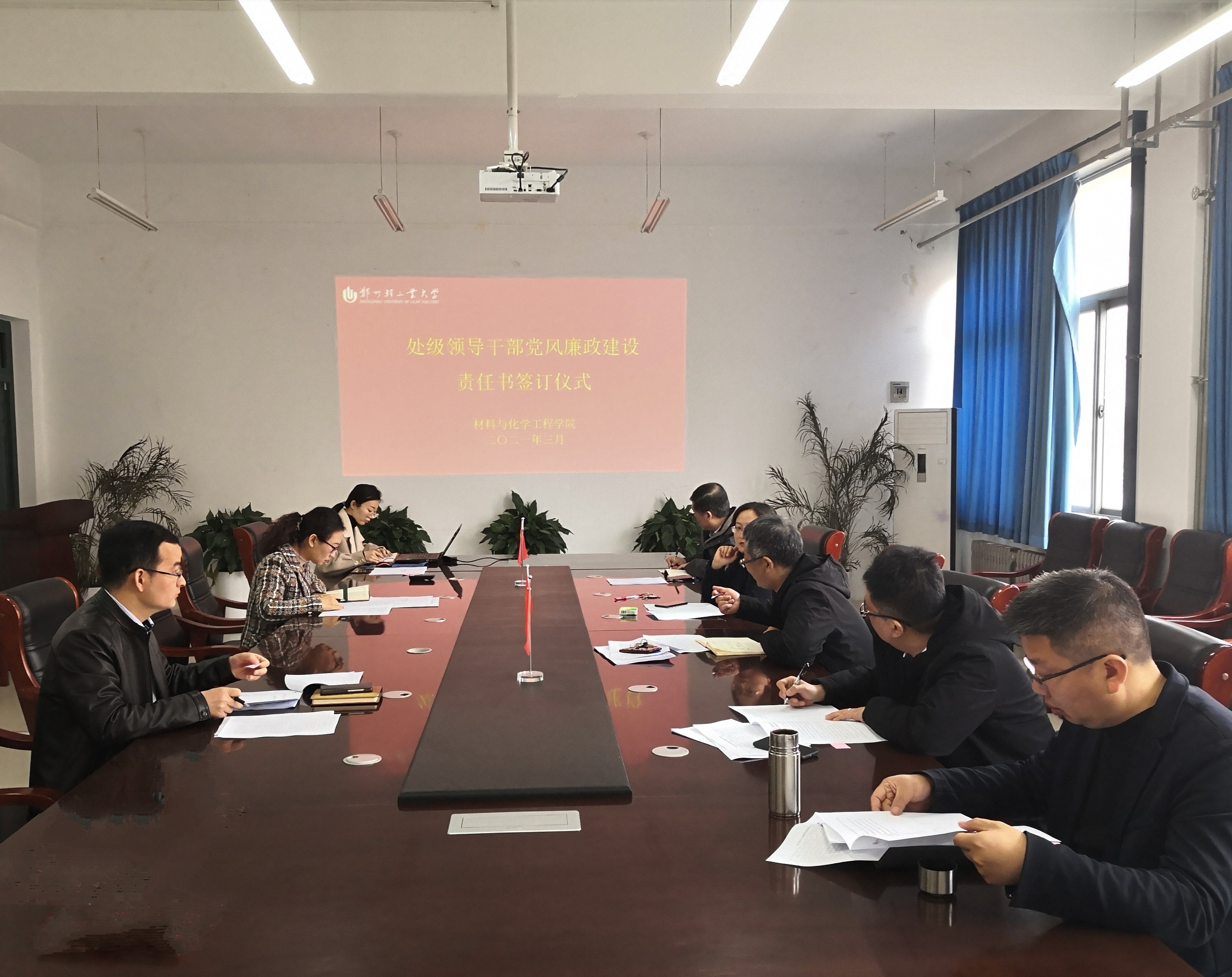 3月11日下午,学院领导班子党风廉政建设责任书签订仪式在222会议室举行。会议解读了党风廉政建设责任书的具体内容,明确了领导班子成员应承担的岗位职责。会议强调,领导干部要不断提高政治站位,严格遵守廉洁建设各项规定,严守政治纪律和政治规矩,自觉接受组织和群众监督,形成推动党风廉政建设和反腐败工作整体合力。