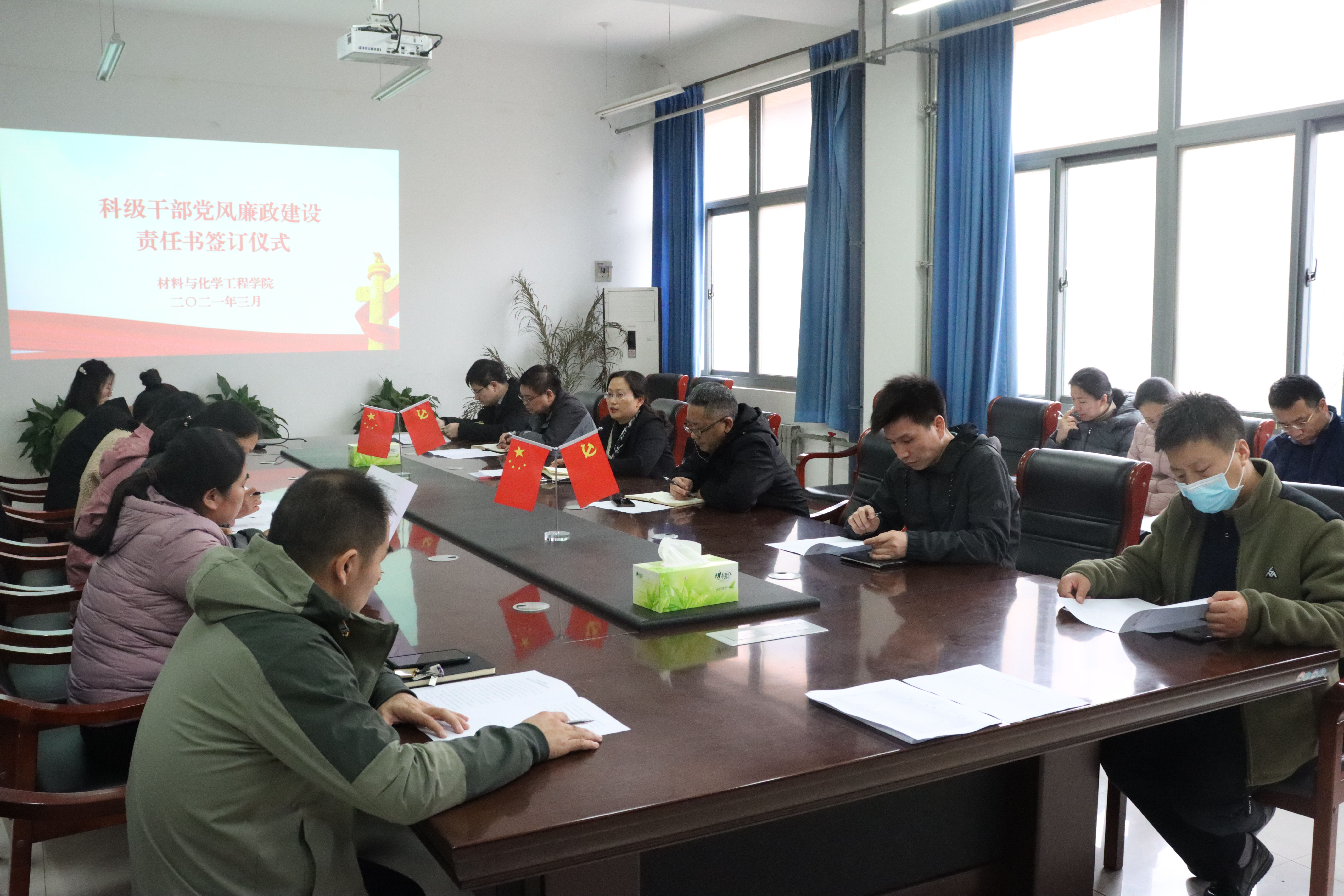 为进一步加强党风廉政建设,确保2021年度党风廉政建设各项任务落到实处,近日,黄色小说 分层次召开领导干部党风廉政建设责任书签订仪式,学院领导班子、全体科级干部参加了会议。
