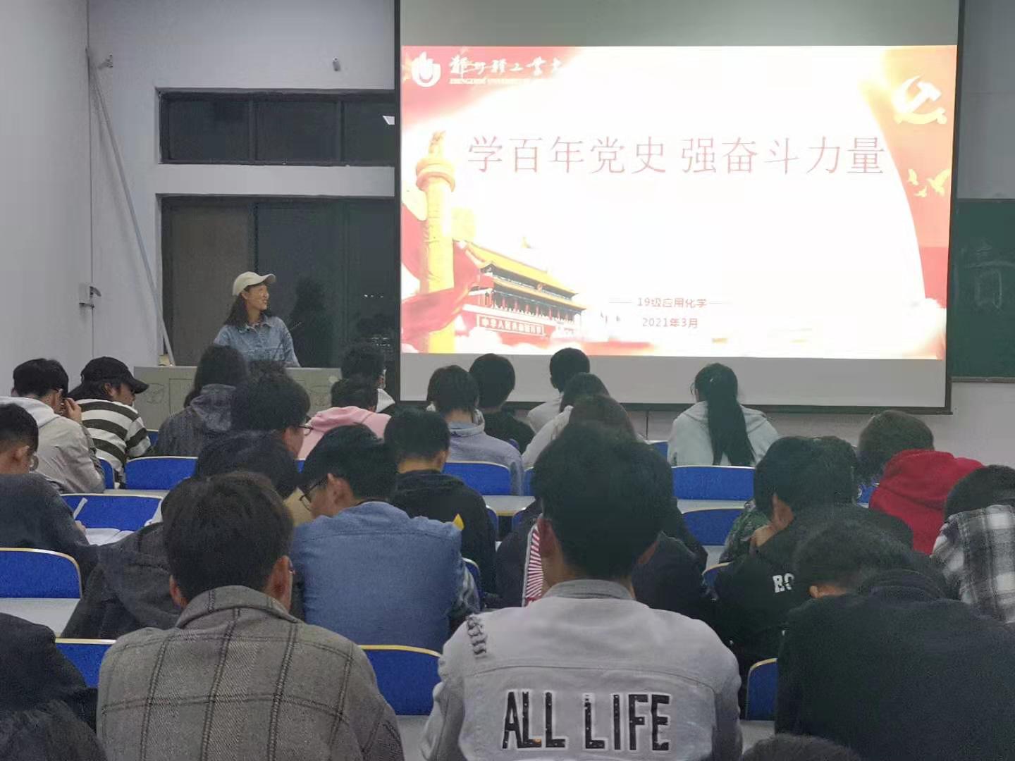 以庆祝建党100周年为契机,引导广大团员青年了解党的光辉历史、宝贵经验和伟大成就,传承展现党的性质宗旨和政治品格,4月1日,黄色小说 在禹州校区召开“学百年党史,强奋斗力量”主题团日活动。