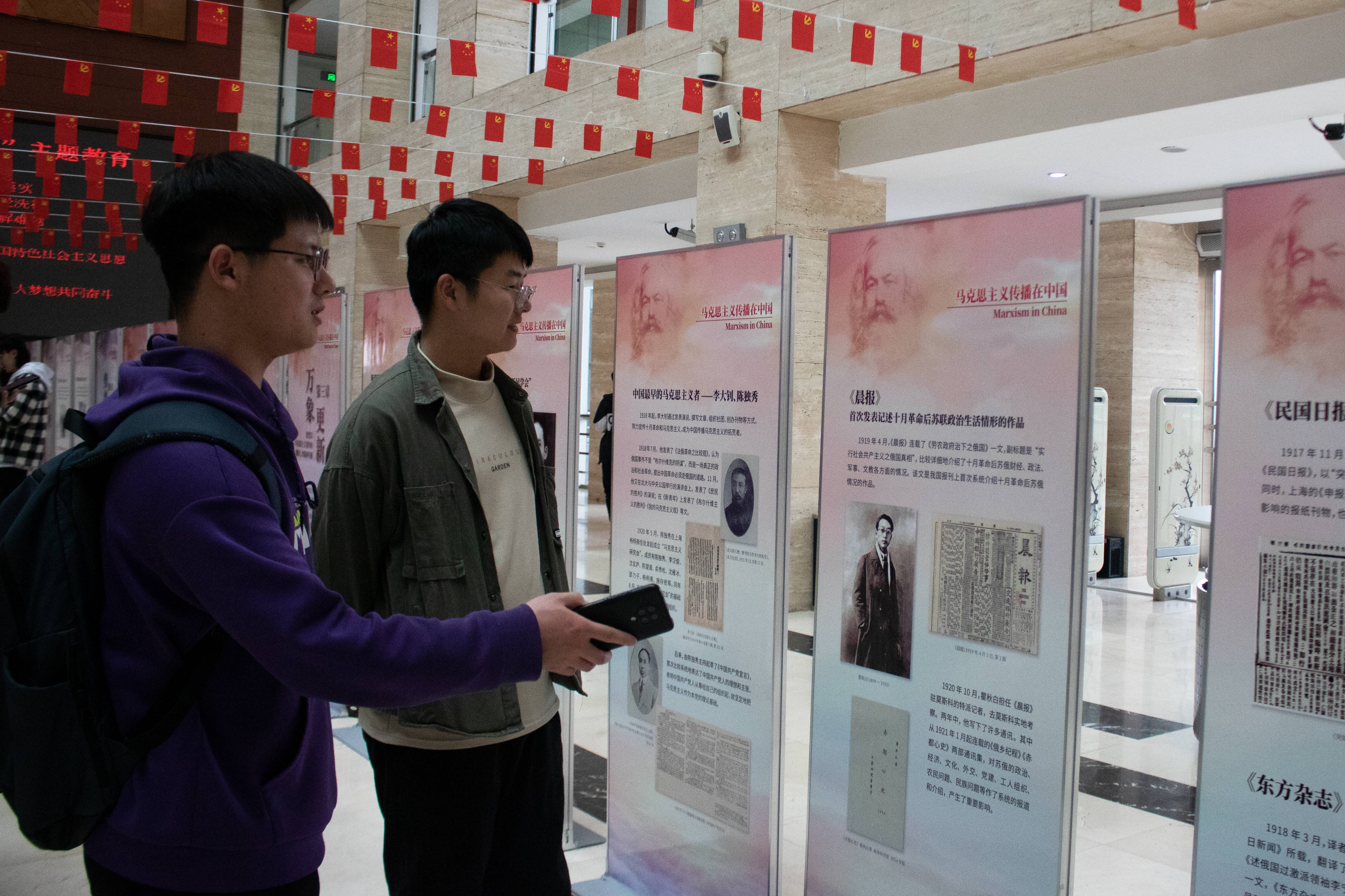 党员同志们分别参观了“马克思主义传播在中国”文献展、“忆初心,启征程”党史百年文献展,通过图文并茂的展示,大家共同回顾了中国共产党百年来波澜壮阔的发展历程,了解了党的奋斗历程和伟大成就,感悟到党的光荣传统和优良作风。同学们一起细细品味文献中的故事,体会革命时期共产党人不畏艰苦的奋斗精神。在参观过程中,党员同志针对党的光辉历程进行交流,无不透露出青年学生对中国共产党由小到大、由弱到强的自豪感。