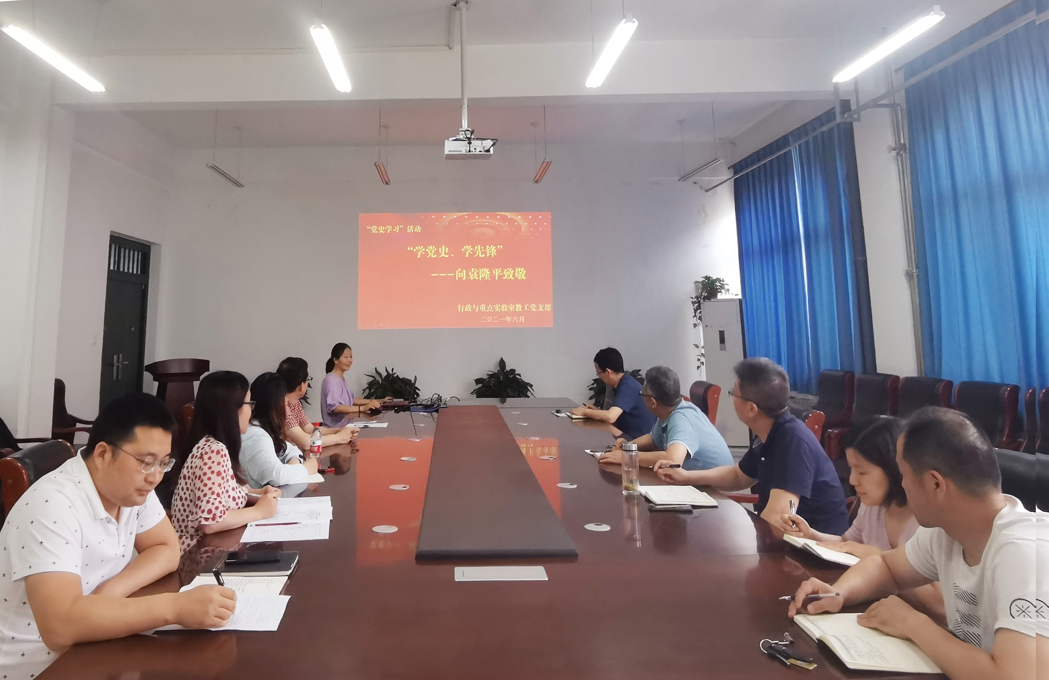 为进一步学习贯彻两院院士大会中国科协第十次全国代表大会精神,深切缅怀工程院院士袁隆平先生,6月4日下午,黄色小说 行政和重点实验室党支部在化工楼222室开展“学党史 学先锋——向袁隆平致敬”主题党日活动。支部全体党员同志参加会议,会议由支部书记李凤彩同志主持。