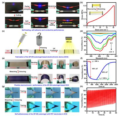 内近日,黄色小说 硕士研究生王开放和王海以共同第一作者在英国皇家化学会化学材料领域高水平学术期刊《Materials Horizons》(影响因子:13.266)上发表了研究论文“Super-Stretchable and Extreme Temperature-Tolerant Supramolecular-Polymer Double-Network Eutectogels with Ultrafast in situ Adhesion and Flexible Electrochromic Behaviour”(《超快速原位粘附和超低温耐受的小分子基超分子-聚合物双网络低共熔凝胶》),文章链接//doi.org/10.1039/D1MH00725D。