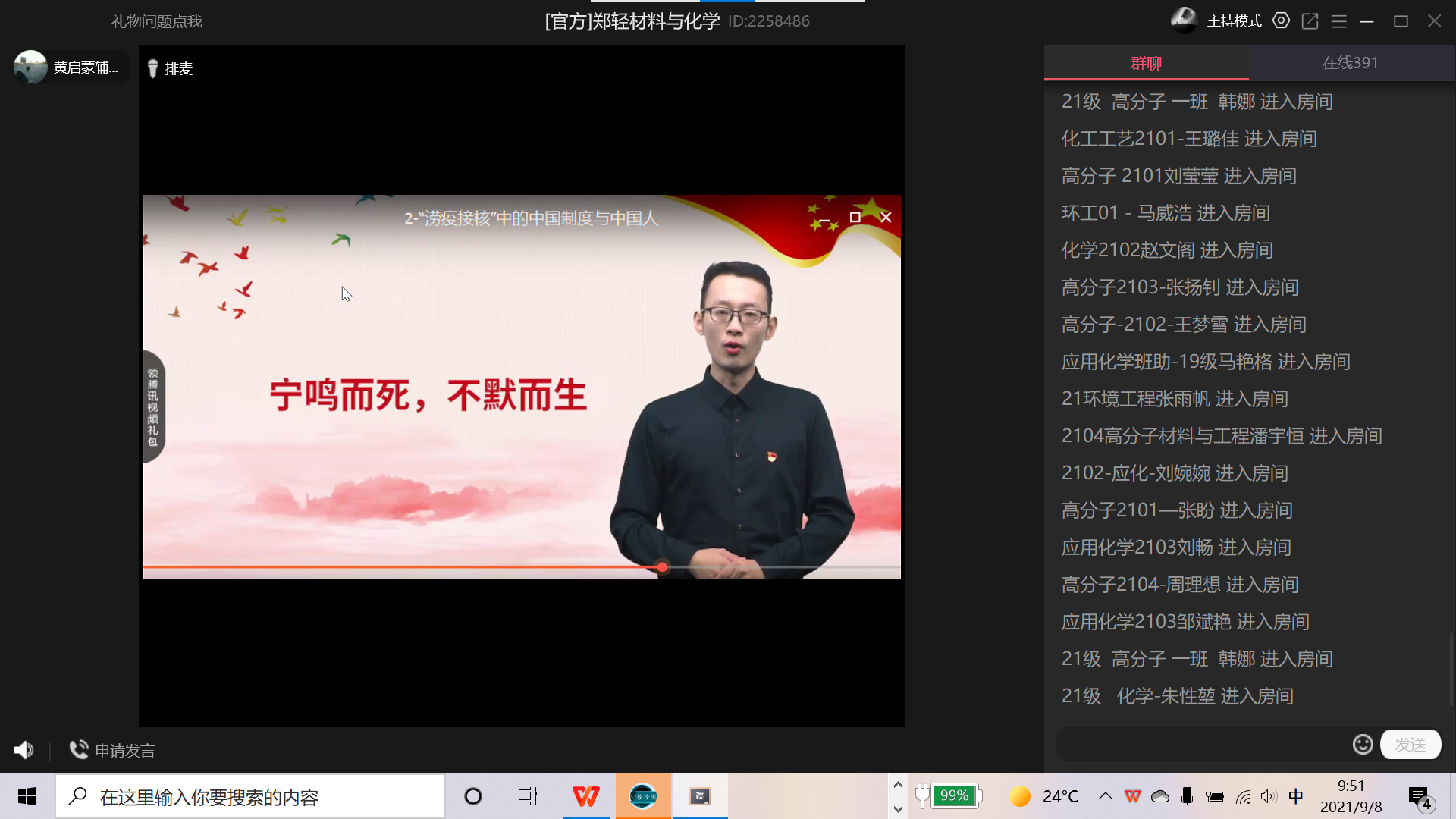活动中,辅导员组织全体新生观看了《郑在归来》和学校思政课教师录制的专题视频公开课《这,就是中国精神》、《“涝疫接核”中的中国制度与中国人》、《从防汛与抗疫中理解“马克思主义行”》,通过深入挖掘抗汛抗疫中的先进典型,以多种形式展现抗汛抗疫的现场场景和志愿者的事后感悟,充分利用线上各种宣传媒体,发挥宣传阵地作用,为每一位同学讲好抗汛抗疫故事,引导青年学生在灾难中学习成长、汲取力量,立志成为有担当的国家中坚力量,在党和人民需要的地方绽放青春之花。最后,针对活动主题开展微讨论活动,同学们分享自己的看法和感悟,热情高涨,大家纷纷表示,表示成为更有责任、有担当的青年,树立爱国心、报国志,做合格的社会主义的建设者和接班人。