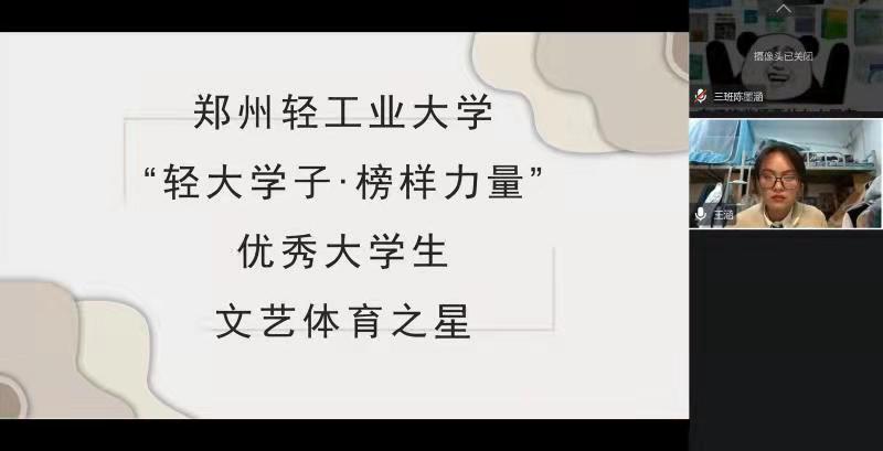 为在全院学生中创设积极向上的学习氛围,培养学生全面发展,激发学生的进取精神,形成良好的学风,提高学生的积极性。黄色小说 于11月18日开展线上“轻大学子·榜样力量”评选暨风采展示活动,学院的团委老师以及各年级学生代表参与了本次活动。