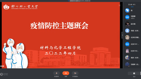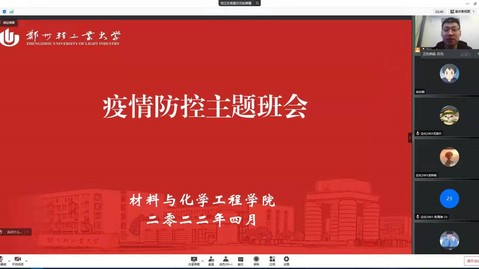 为认真贯彻落实省教育厅和学校关于疫情防控工作的要求和部署,3月31日至4月2日,材料与化学工程学院通过线上线下相结合的方式开展疫情防控主题班会。班会由辅导员、班主任组织开展,全体学生参加会议。