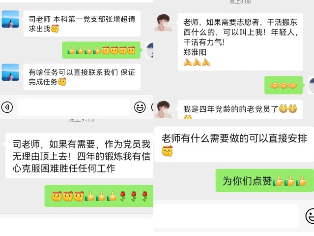 筑牢防线,护佑学生。在校的老师以办公室为家,以宿舍楼宇为室,深入学生宿舍,看望慰问学生,认真倾听学生在校园疫情防控常态化下的心声以及诉求,全力解决学生学习、生活等方面的实际困难,用实际行动关爱学生。六十名班主任与辅导员以线上指导方式加入疫情防控、学生管理工作队伍,与辅导员一起召开线上疫情防控主题班会,结合反面案例警示教育,强化学生责任意识、规矩意识、安全意识;针对就业、学业、心理困难等特殊群体学生进行精准帮扶,在特殊时期,关心关爱学生,助力学生成长。
