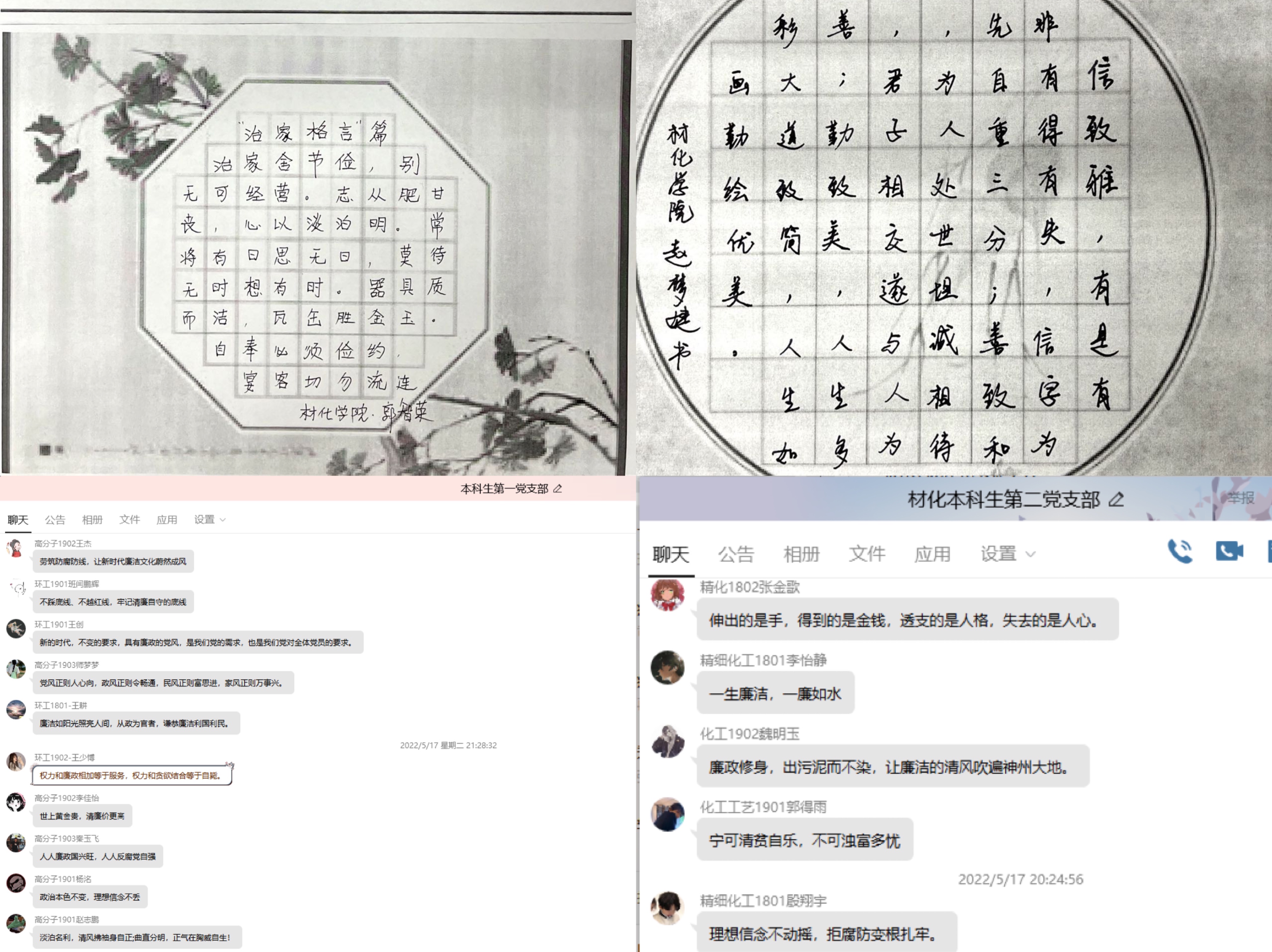讲好廉政微党课。各党支部分别以“廉洁党风建设”“大学生党员廉洁观”等为主题,支部书记为支部全体党员讲授廉政党课。结合当前新的历史条件下,每一名党员干部面临的诱惑和考验众多,需要警钟长鸣,从思想深处找问题,防微杜渐,进一步增强廉洁自律意识,提高防腐拒变的能力,筑牢思想防线,踏实工作,认真履责,带头严守党的纪律,决不可触碰党纪红线。