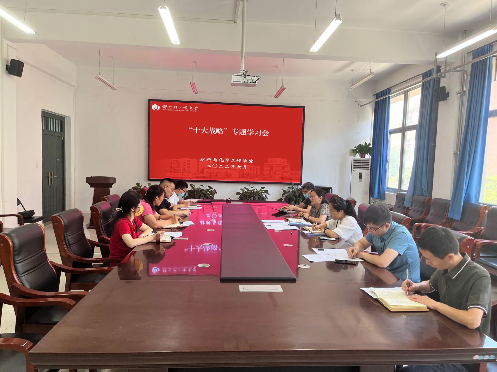 6月28日上午,黄色小说 在化工楼222会议室组织开展“十大战略”专题学习会,学院党委书记常亮、副书记司丽娜以及全体专兼职辅导员参加此次学习会。