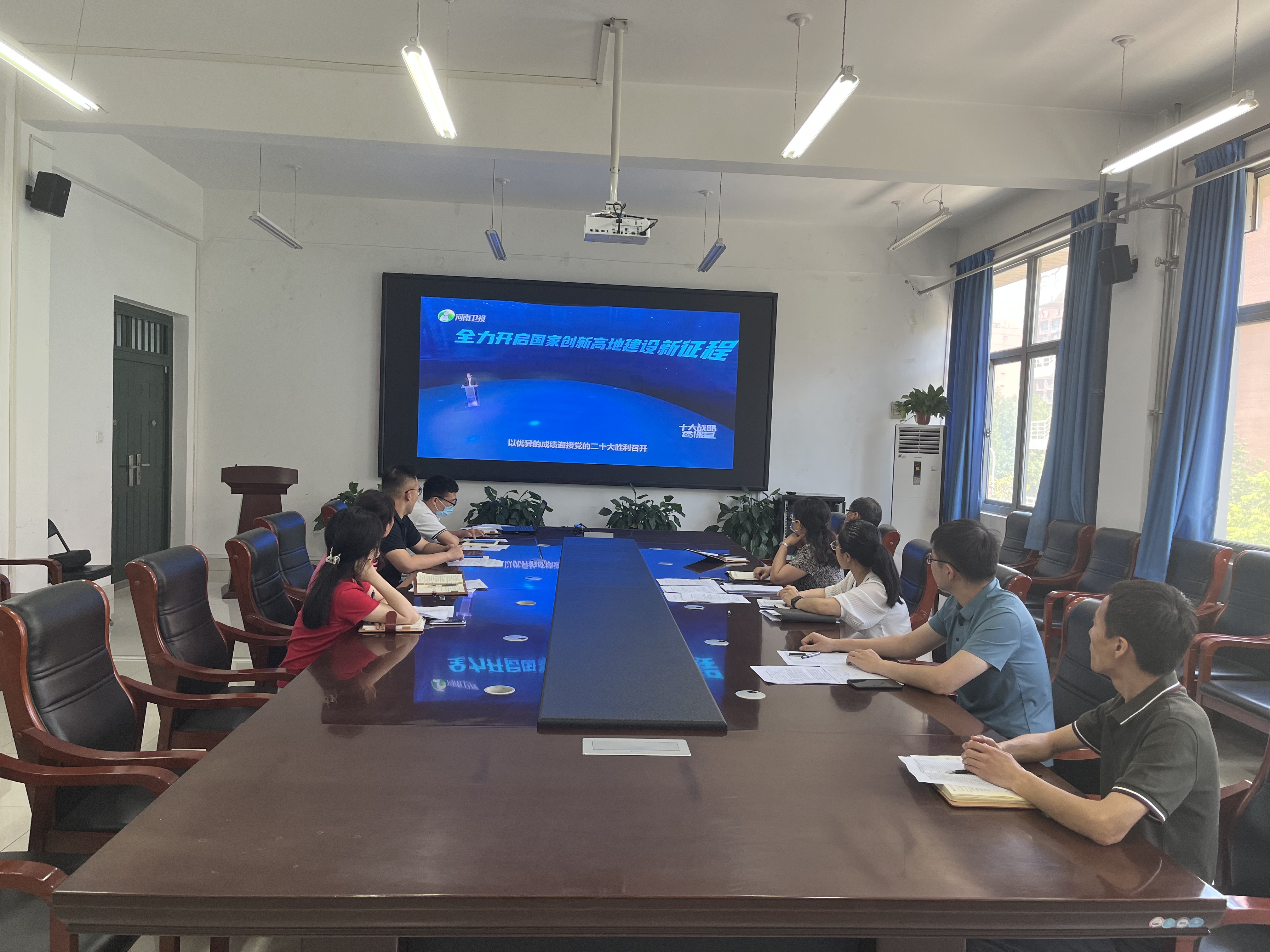 与会同志集中观看了《十大战略云课堂》短片,河南省科技厅副厅长刘英峰从搭建创新平台、引育创新人才、培育创新主体、落地创新项目、抓实创新载体、完善创新机制等方面解析了“十大战略”之首“创新驱动 科教兴省 人才强省战略”。常书记在会上强调,作为高校教师,更要进一步统一思想、提高站位,进一步提升能力、锻造作风、实干立身,紧跟学校的重点工作,提升自己的学习管理能力,以务实举措助推学院事业内涵高质量发展。大家纷纷表示,今后将学习培训与推进工作有机融合,切实把学习成效转化为做好实际工作的热情干劲,确保各项工作条条落实、件件落地、事事见效。