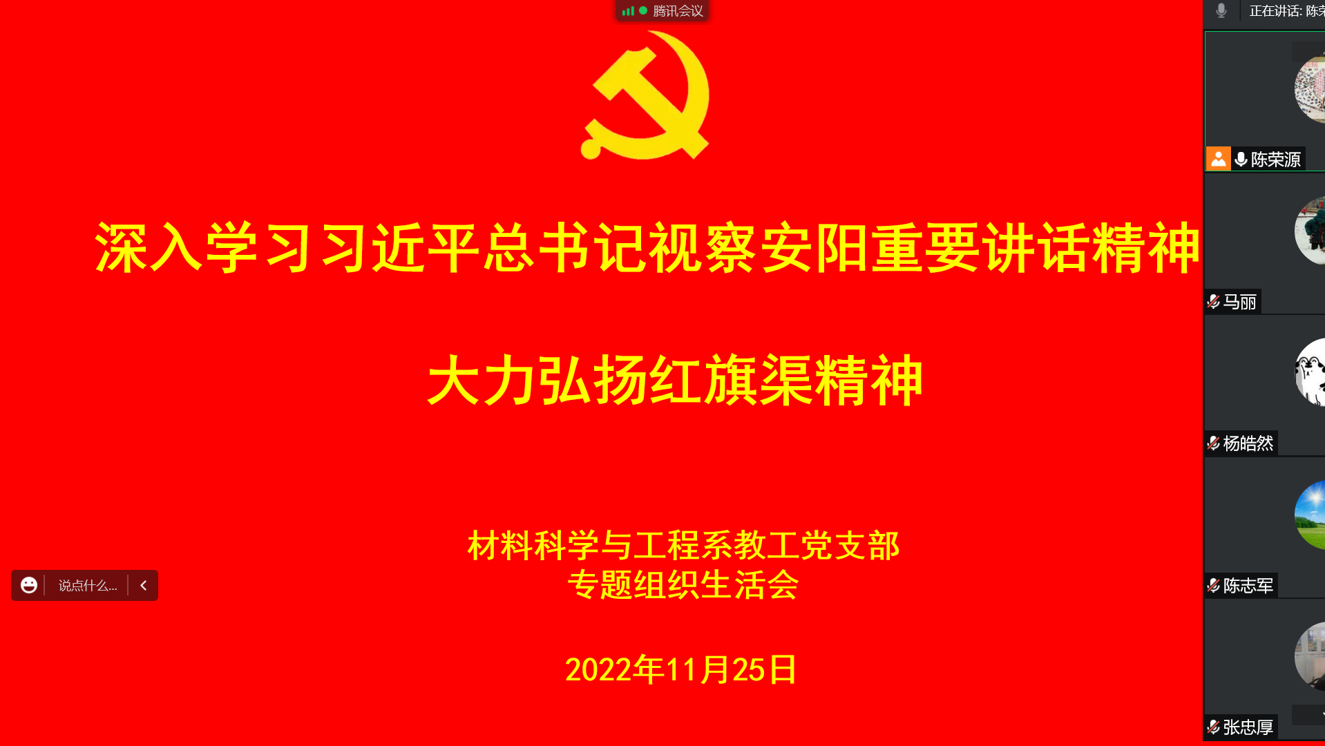 近日,材料与化学工程学院各党支部统筹安排,精心组织,召开以“深入学习习近平总书记视察安阳重要讲话精神,大力弘扬红旗渠精神”为主题的专题组织生活会。