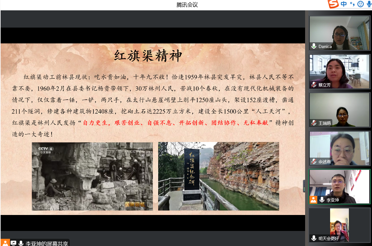 会上,各党支部认真学习了习近平总书记视察安阳重要讲话内容,观看中央电视台《国家记忆》栏目播出的专题片《根脉——红旗渠精神》,学习红旗渠建设者们开山辟路的精神和意志,重温艰苦修渠岁月,追忆先辈为民初心,深刻领会“红旗渠精神”的内涵及其时代价值。围绕会议主题,同志们交流心得体会,教师党员表示要把“红旗渠精神”融入教书育人、学院建设全过程,将红旗渠精神转化为思政课资源,讲好红旗渠故事;学生党员则表示要继承和发扬吃苦耐劳、自力更生、艰苦奋斗的精神,做有理想、敢担当、能吃苦、肯奋斗的新时代好青年。会上所有党员按照红旗渠精神,结合个人实际工作情况,对自己进行了深入剖析。