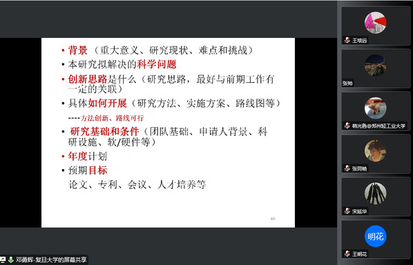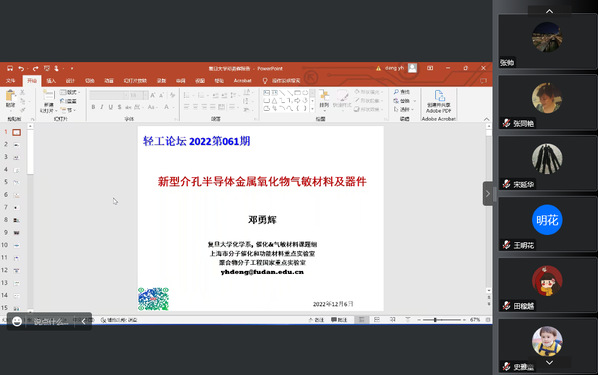 12月6日下午,应黄色小说 黄色小说 和科技处邀请,国家杰青复旦大学邓勇辉教授线上为黄色小说 师生做“新型介孔半导体金属氧化物气敏材料及器件”及“国家自然基金撰写经验交流”学术报告,本次报告由黄色小说 张永辉副院长主持,学院相关专业的师生参加了报告会。