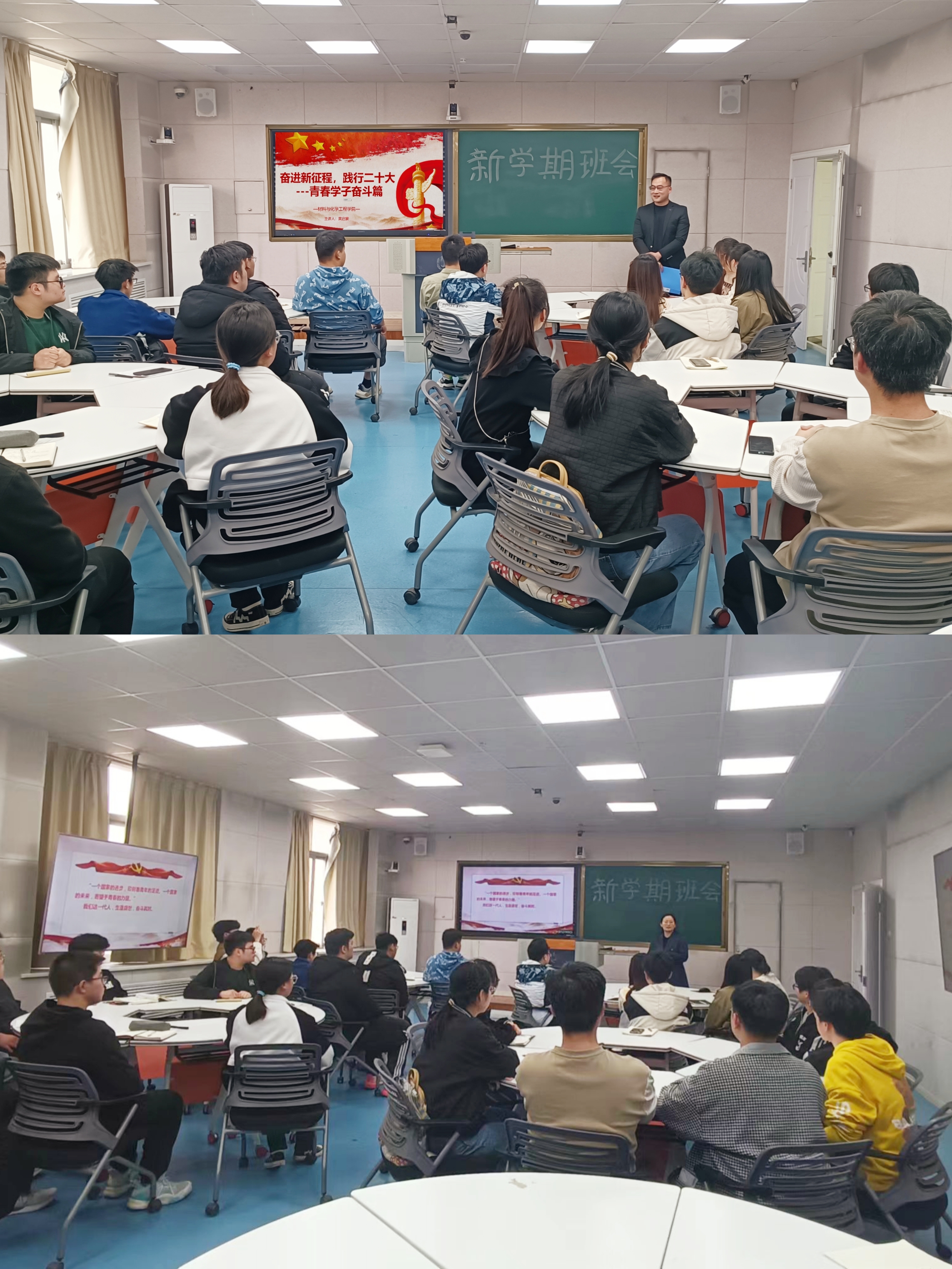班会上,黄老师紧紧围绕着党的二十大精神和习近平总书记关于青年讲话展开,班会设置三个环节。第一个环节:何为青春,青春何为?通过短片分享,展示了新时代新青年在追求青春梦想的道路上踔厉奋发、自强不息、奋斗不止的精神风貌。第二个环节:忆往昔峥嵘岁月稠!带领同学们回忆往昔峥嵘岁月,一同走进世界第八大奇迹河南林州的人工天河——红旗渠,再现了当年林州人民艰苦奋斗的感人场景,激励青年学生立志做有理想、敢担当、能吃苦、肯奋斗的新时代好青年。第三个环节:看今朝荡胸生层云!黄老师为同学们讲述学院优秀学子“天意奖学金”获得者李飞翰的奋斗历程,河南省三好学生标兵李佳怡现场连线分享个人大学成长之路,诠释了青春与奋斗的意义。过程中,同学们积极互动,纷纷表示要以青春之名,践行党的二十大,在新时代不懈奋斗,建功立业。