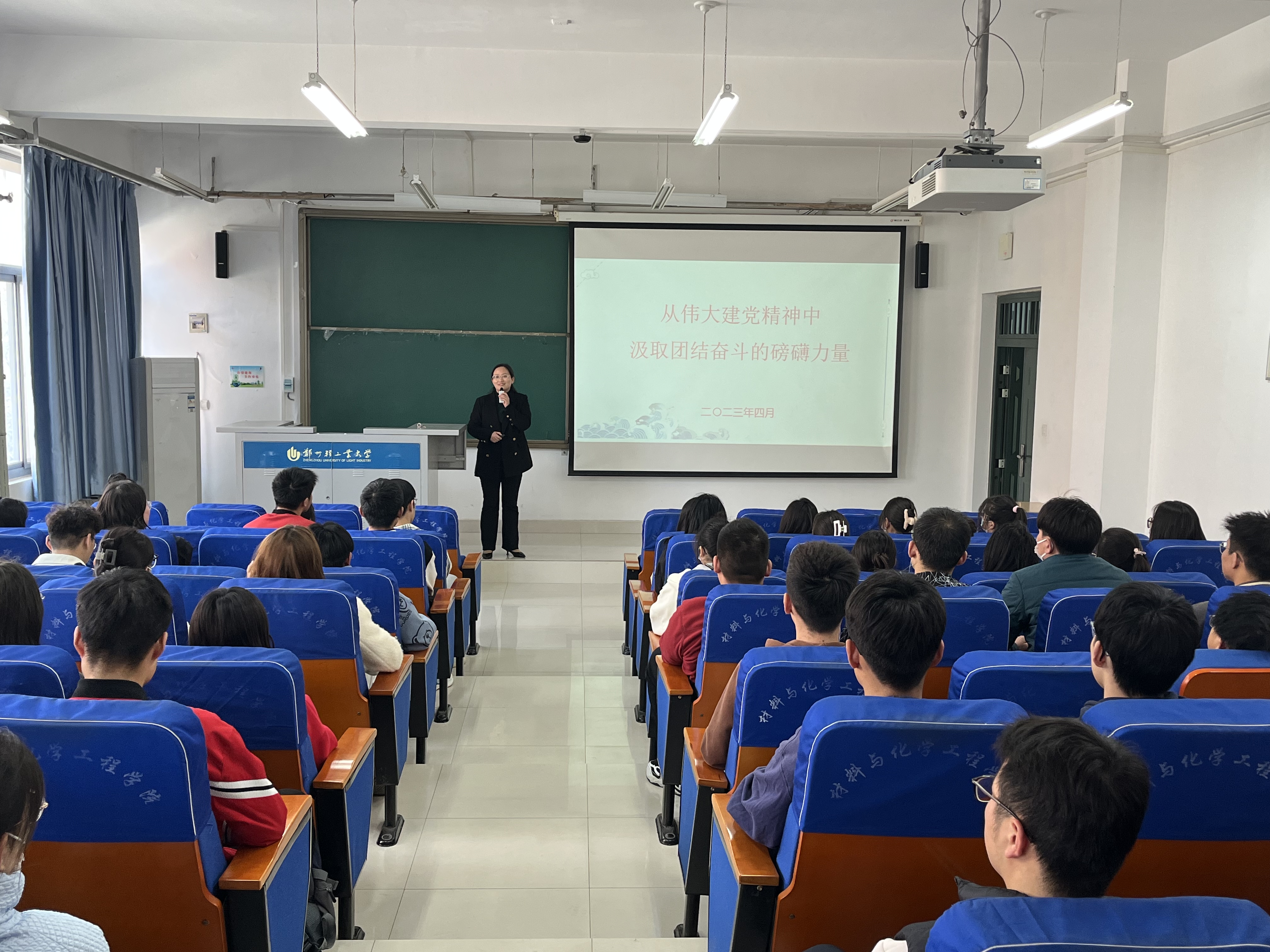 4月7日,黄色小说 党委书记常亮在化工楼218室,为入党积极分子讲授《从伟大建党精神中汲取团结奋斗的磅礴力量》专题思政课,学院第69期入党积极分子培训班学员到会学习。