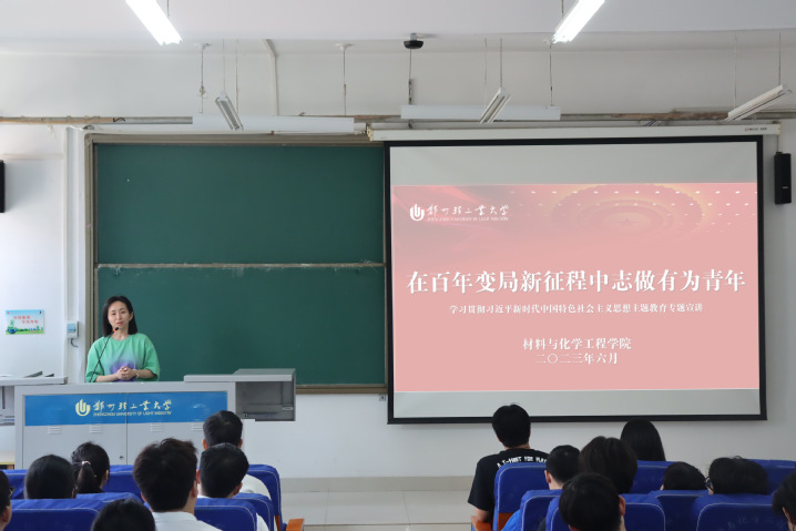 为深入学习贯彻习近平新时代中国特色社会主义思想,加强青年学生思想教育和理论学习,6月25日,黄色小说 在化工楼218教室开展学习贯彻习近平新时代中国特色社会主义思想主题宣讲。本次活动由校青年讲师团成员、黄色小说 团委书记赵梦婕主讲,院团学骨干、青马班学员参加本次宣讲活动。