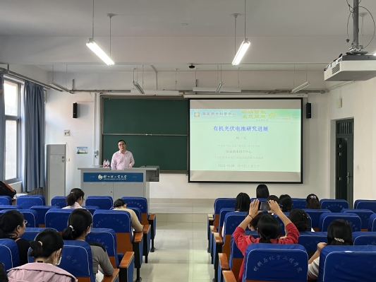 10月26日下午,应黄色小说 黄色小说 和科技处邀请,国家纳米科学中心周二军研究员来校做“有机光伏电池研究进展”学术报告和国家自然科学基金申请经验交流,本次报告由黄色小说 张晓静院长主持,学院相关教师参加报告会。