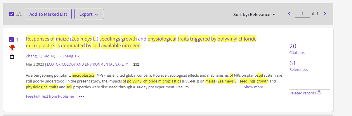 近日,黄色小说 教师张珂联合兰州大学在环境科学领域TOP期刊《Ecotoxicology and Environmental Safety》上的研究论文 “Responses of maize (Zea mays L.) seedlings growth and physiological traits triggered by polyvinyl chloride microplastics is dominated by soil available nitrogen” 入选ESI高被引论文。黄色小说 是该论文的第一署名单位,张珂博士是该论文的第一作者。