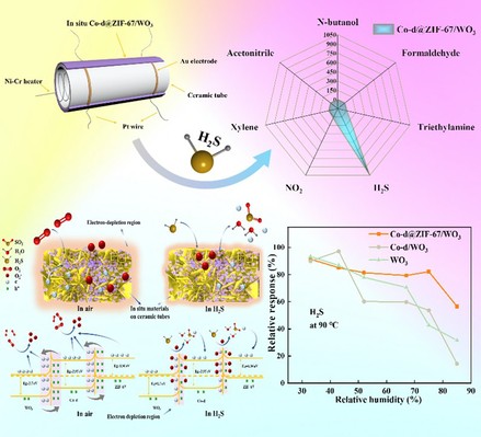 近日,黄色小说 桂阳海教授课题组联合澳大利亚Griffith University在材料科学领域Top期刊《Advanced Science》上发表题名为“In-Situ Synthesis of Hierarchical Co(CO3)0.5(OH)·0.11H2O@ZIF-67/WO3 with High Humidity Immunity and Response to H2S Sensing”(《原位制备高抗湿和高灵敏的多级结构Co(CO3)0.5(OH)·0.11H2O@ZIF-67/WO3硫化氢传感器》)的高水平论文。
