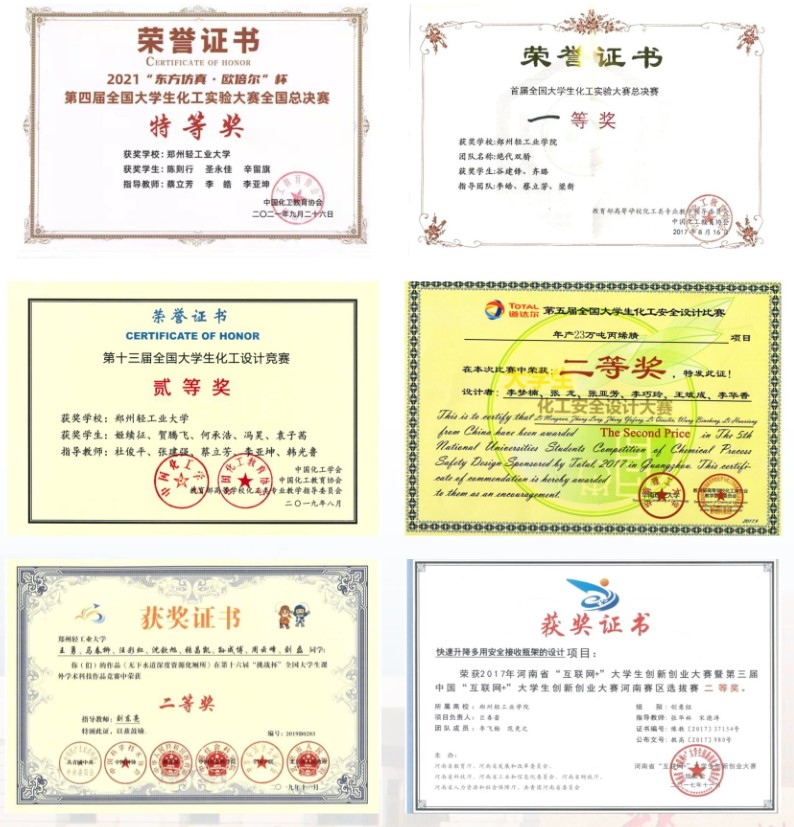 近三年,本专业学生在校期间承担国家级、省级大学生创新创业训练项目11项;参加“挑战杯”等国家级、省级科技大赛及专业竞赛,获各类奖励50余项。