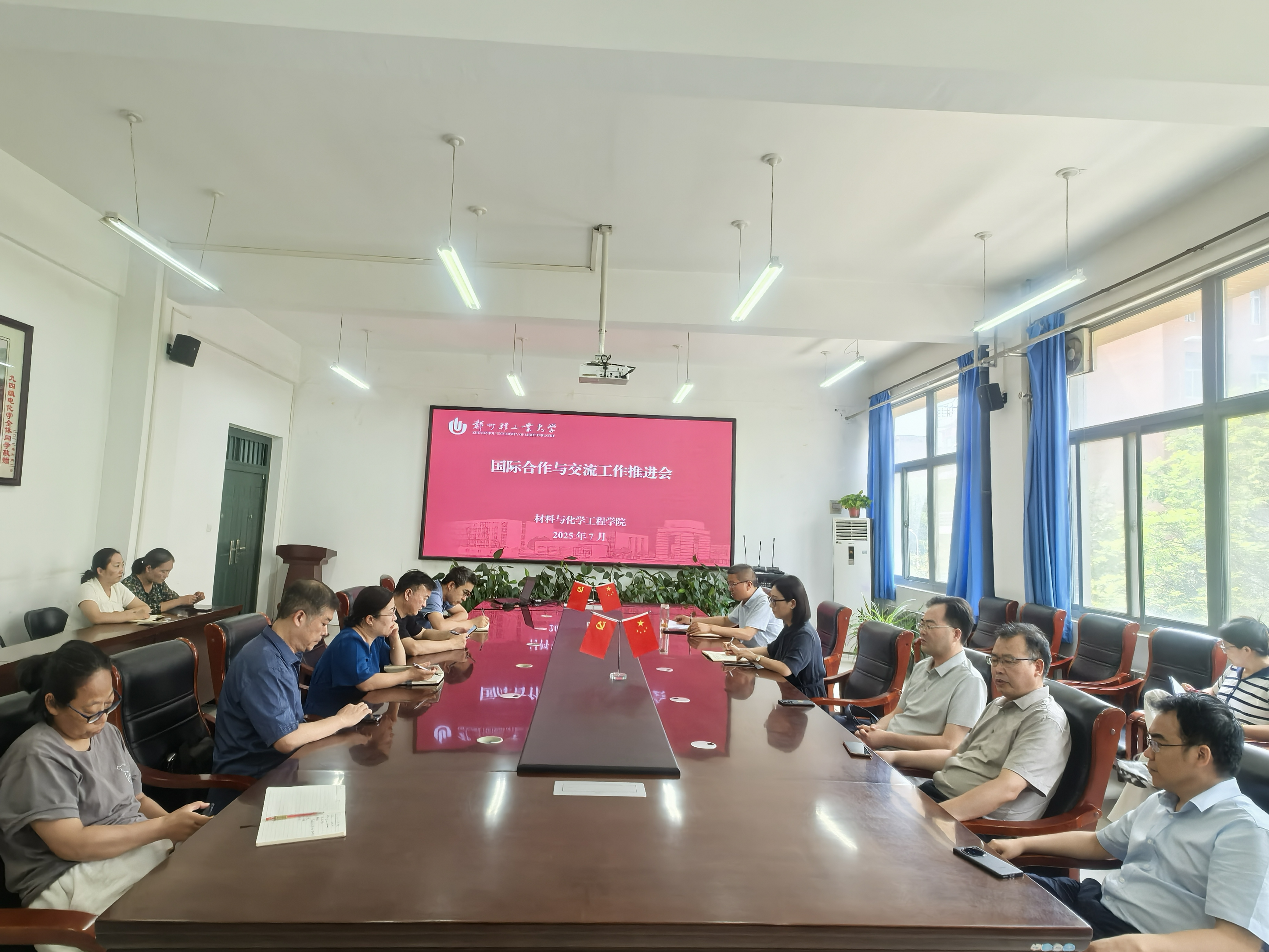 7月7日,黄色小说 在222会议室召开国际合作与交流工作推进会。学院院长张晓静、副院长杨许召,教师代表及研究生全英文课程(群)负责人参加会议。