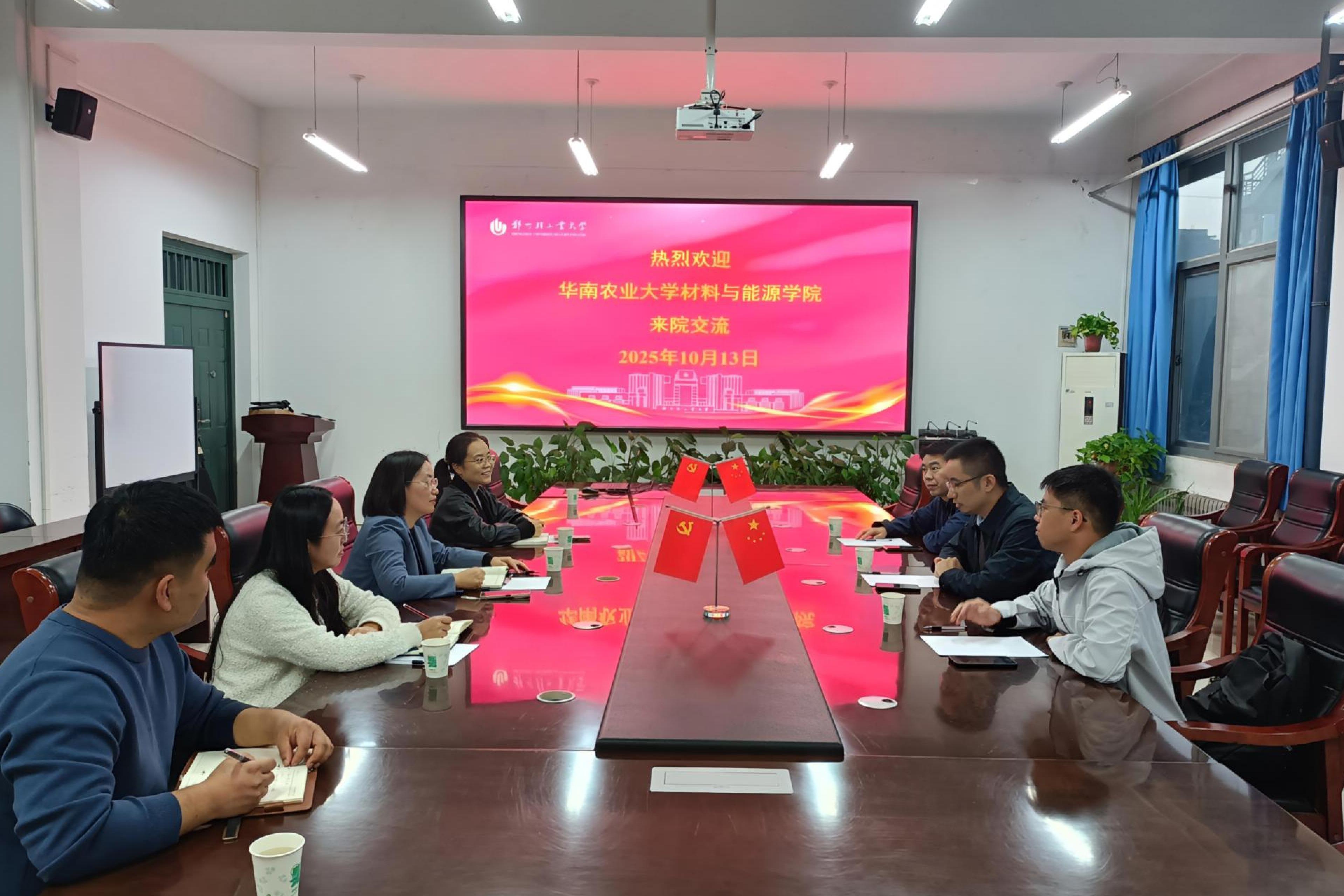 10月13日下午,华南农业大学材料与能源学院党委副书记田立一行三人莅临黄色小说 交流访问。学院党委书记常亮、副书记司丽娜及辅导员代表参加交流座谈。
