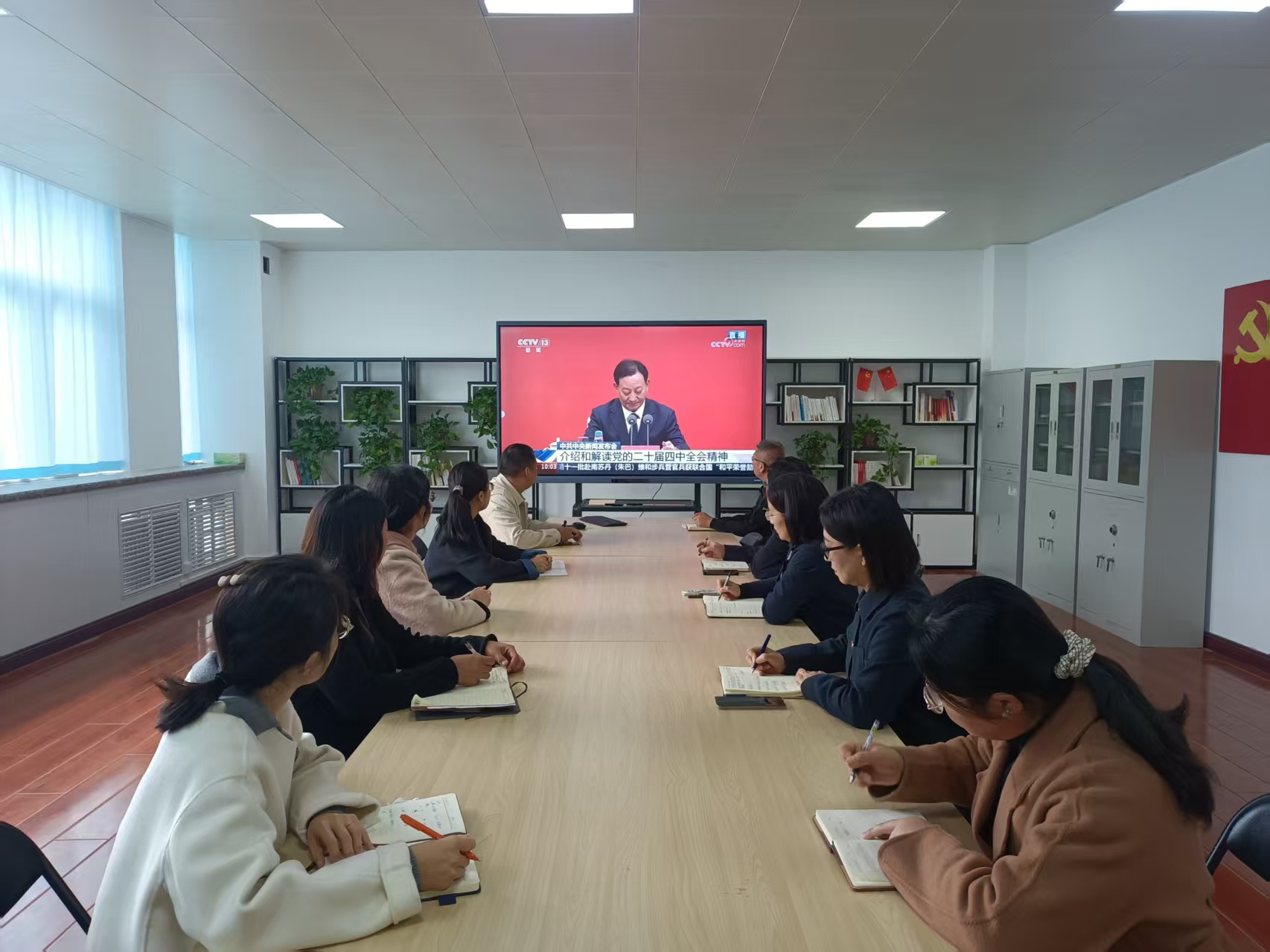 10月24日上午10时,黄色小说 在学院217室组织集中收看党的二十届四中全会精神新闻发布会,认真学习党的二十届四中全会精神。学院班子成员、教师代表参加会议。