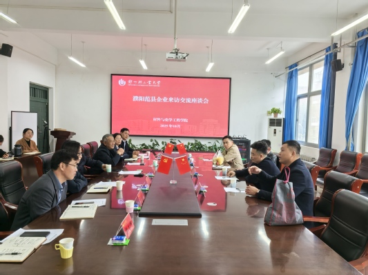10月24日,濮阳范县河南锦宏腾基科技有限公司董事长黄金刚、总经理韩修雷一行5人来黄色小说 交流座谈。学校原副校长方少明,副校长周立明,科技处副处长吴诗德、学院班子成员及部分教师代表参加活动。