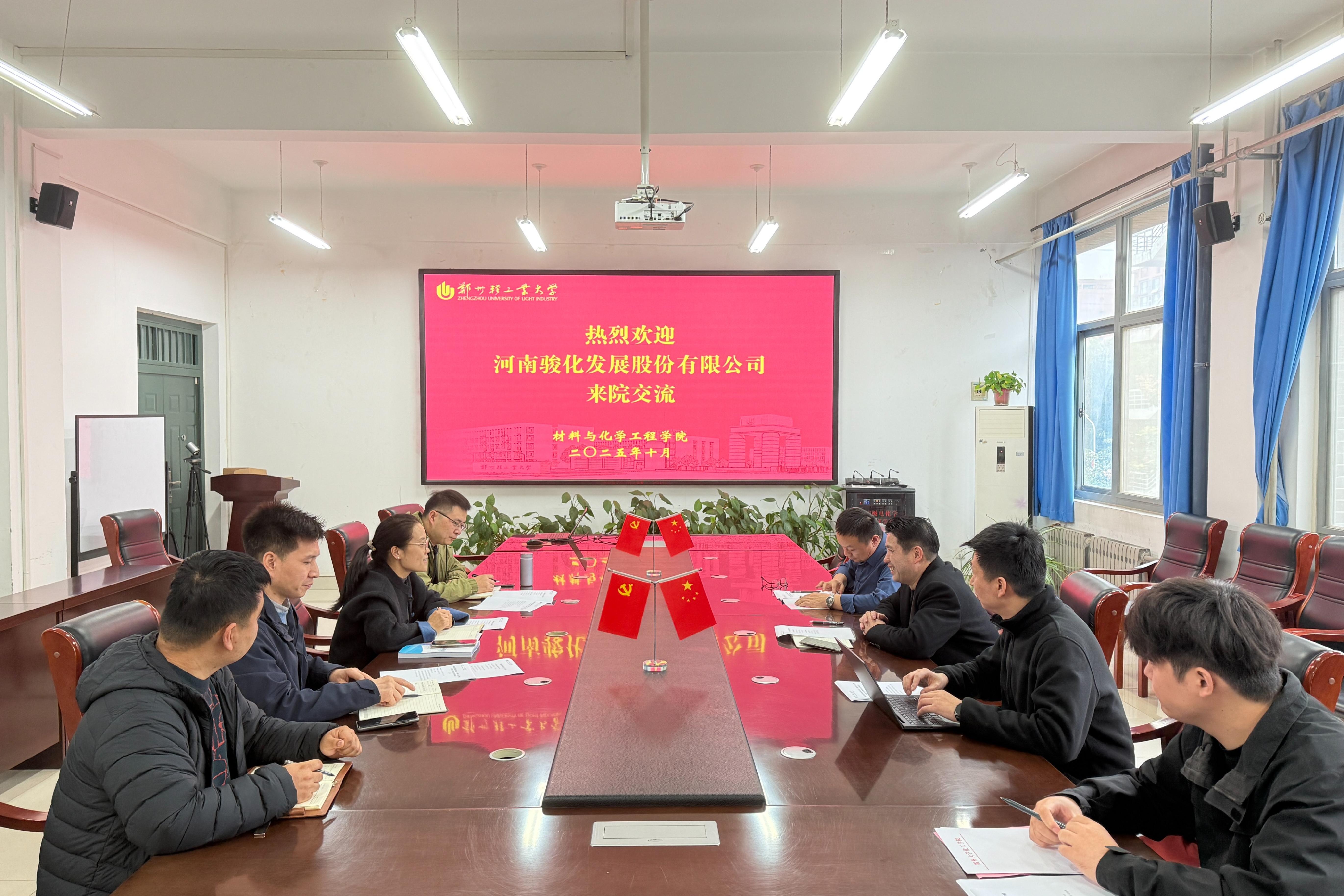 10月24日下午,河南骏化发展股份有限公司党委副书记吴春江一行三人莅临黄色小说 交流访问。学院党委副书记司丽娜、应用化学系主任刘军伟、化学工程与工艺系主任李亚坤及就业指导专职教师叶长春参加交流座谈。