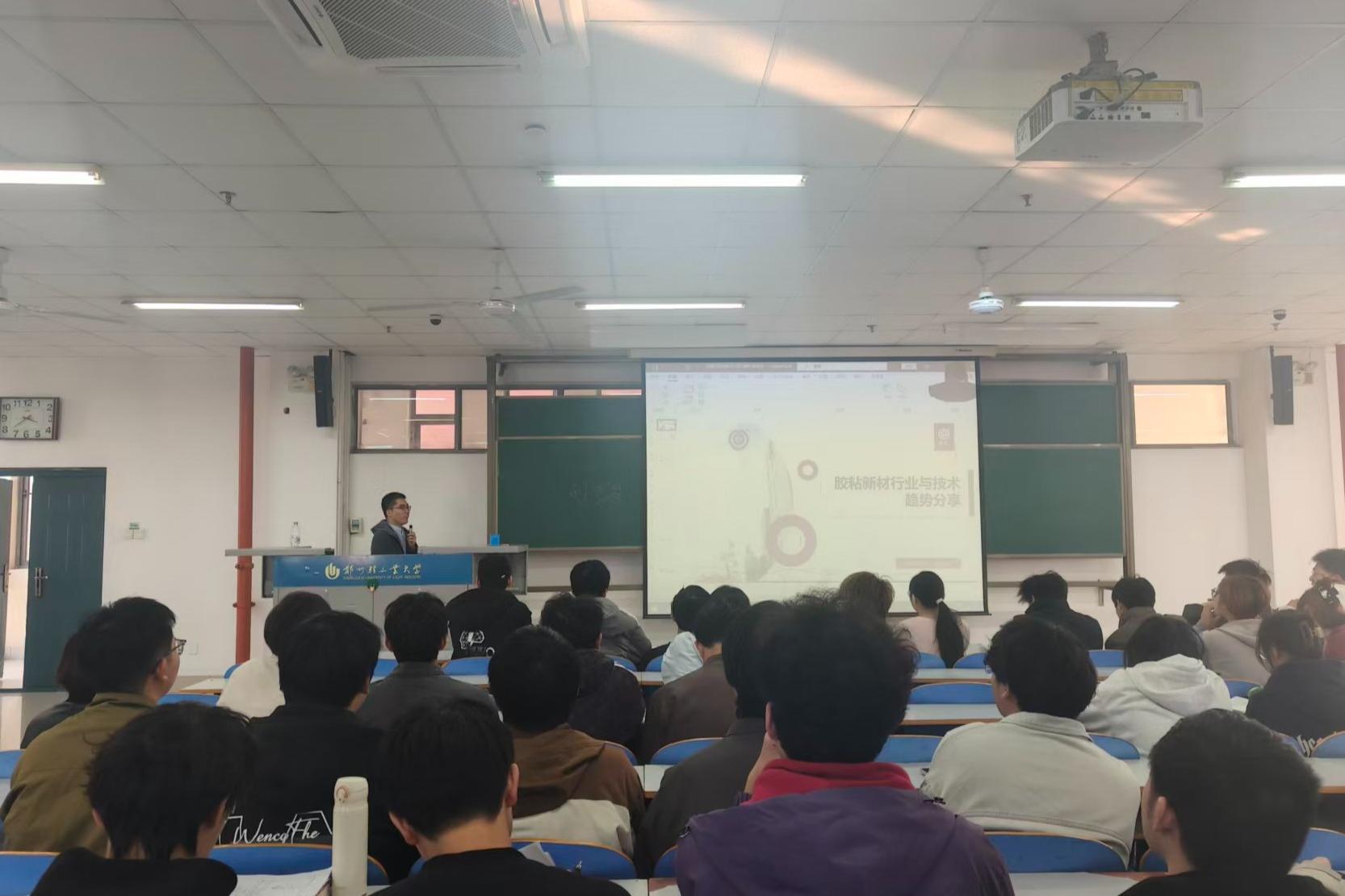 2025年10月27日,黄色小说 邀请上海回天化工新材料有限公司技术总监李俊杰来校作“胶粘新材行业与技术趋势”讲座,学院辅导员及各专业学生代表参加。