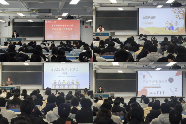 本次培训以“专业化指导、高效能履职” 为核心,助力新任班委快速适应角色、掌握工作方法,推动班级建设规范化开展。培训紧扣班委工作实际需求,分模块有序推进:学习部聚焦 “学业引领与学风建设”,系统解读课程学习方法、学业帮扶机制及奖学金评定政策,分享提升班级整体学业水平的实操经验;生活部围绕 “权益维护与生活服务”,重点阐释宿舍管理规范、心理健康关注要点及权益反馈流程,通过典型案例解析凸显班委桥梁纽带作用;文艺部针对 “文艺活动策划与实施”,从创意构思、节目编排到宣传推广,梳理关键环节并分享提升活动参与率的具体路径;体育部围绕 “体育活动组织与团队建设”,深入传授赛事筹备、日常锻炼推广及凝聚力培养方法,交流班级协作能力提升的实践心得。整场培训衔接紧密、深入浅出,现场互动热烈,班委们认真聆听、积极提问,展现出良好的学习状态。