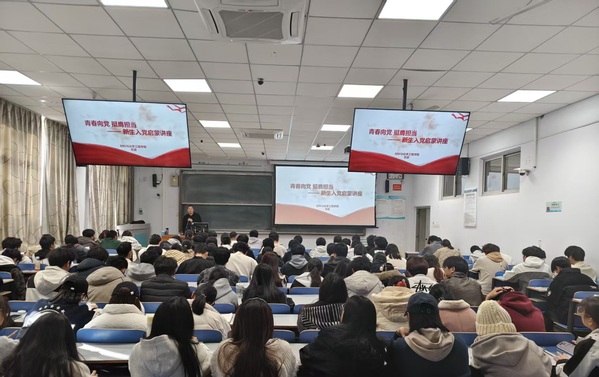 讲座以“青春向党,挺膺担当”为题,从“党的基本知识”“党员先锋”“入党流程”三个方面展开,详细讲解了党的基本知识,帮助青年大学生进一步坚定理想信念,提升政治素养。以大学生党员的先进典型案例为切入点,引导大一新生端正入党动机,自觉践行社会主义核心价值观,通过详细介绍大学生入党的完整流程,为新生们勾勒出了一条清晰、规范的入党路径,消除了同学们对入党过程的陌生感与疑虑。最后,苏震勉励同学们以身边的优秀党员为榜样,不仅要在思想上积极向党组织靠拢,更要在学习、工作和生活中严格要求自己,以实际行动践行“挺膺担当”的青春誓言。