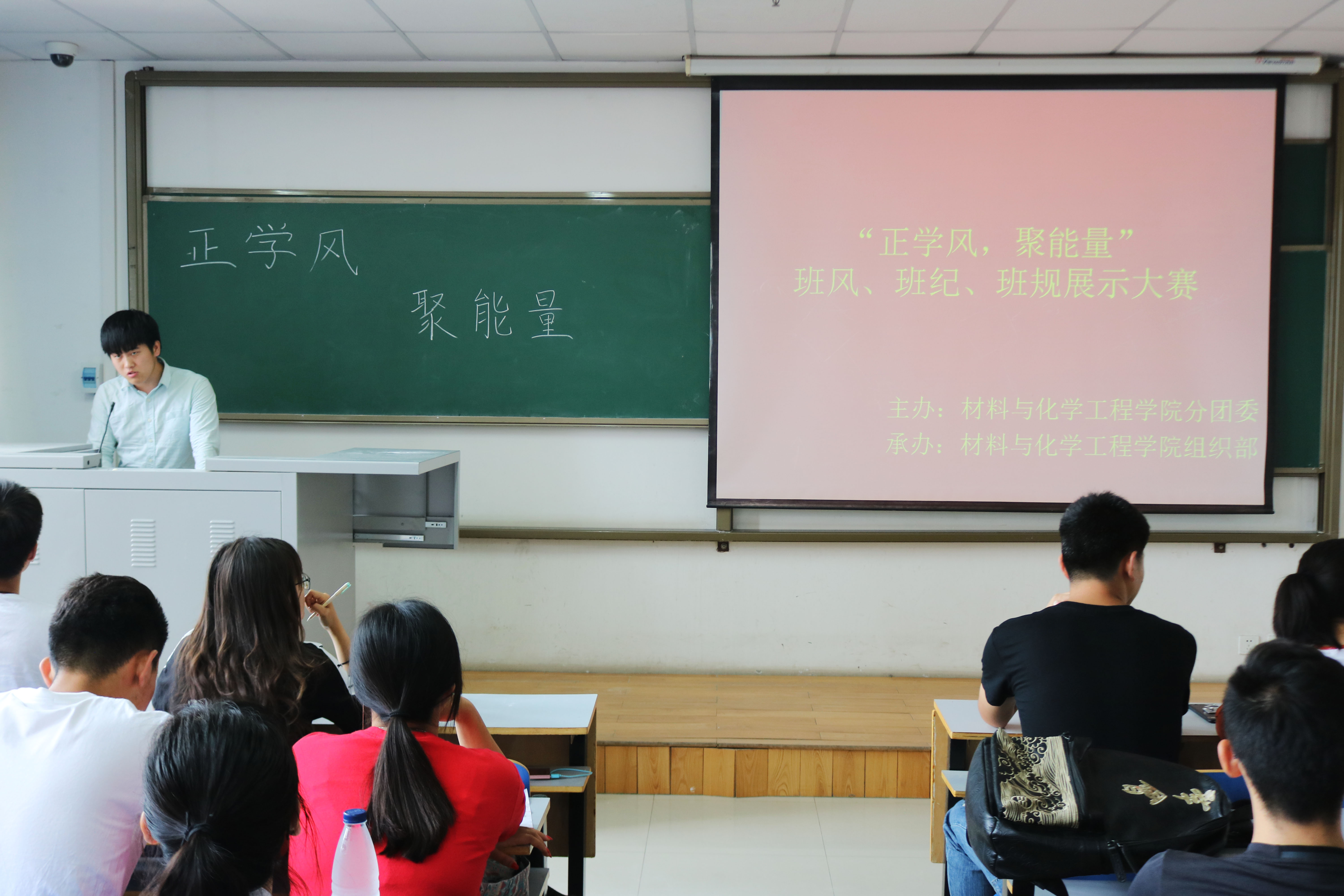 分团委主办,学生会组织部承办的“班风建设PPT汇报展示”活动于2018年5月23日在二教楼808室举行。本次活动由组织部干事韩佳鑫主持,学生会全体干事、16级、17级各班班委参加了本次活动。