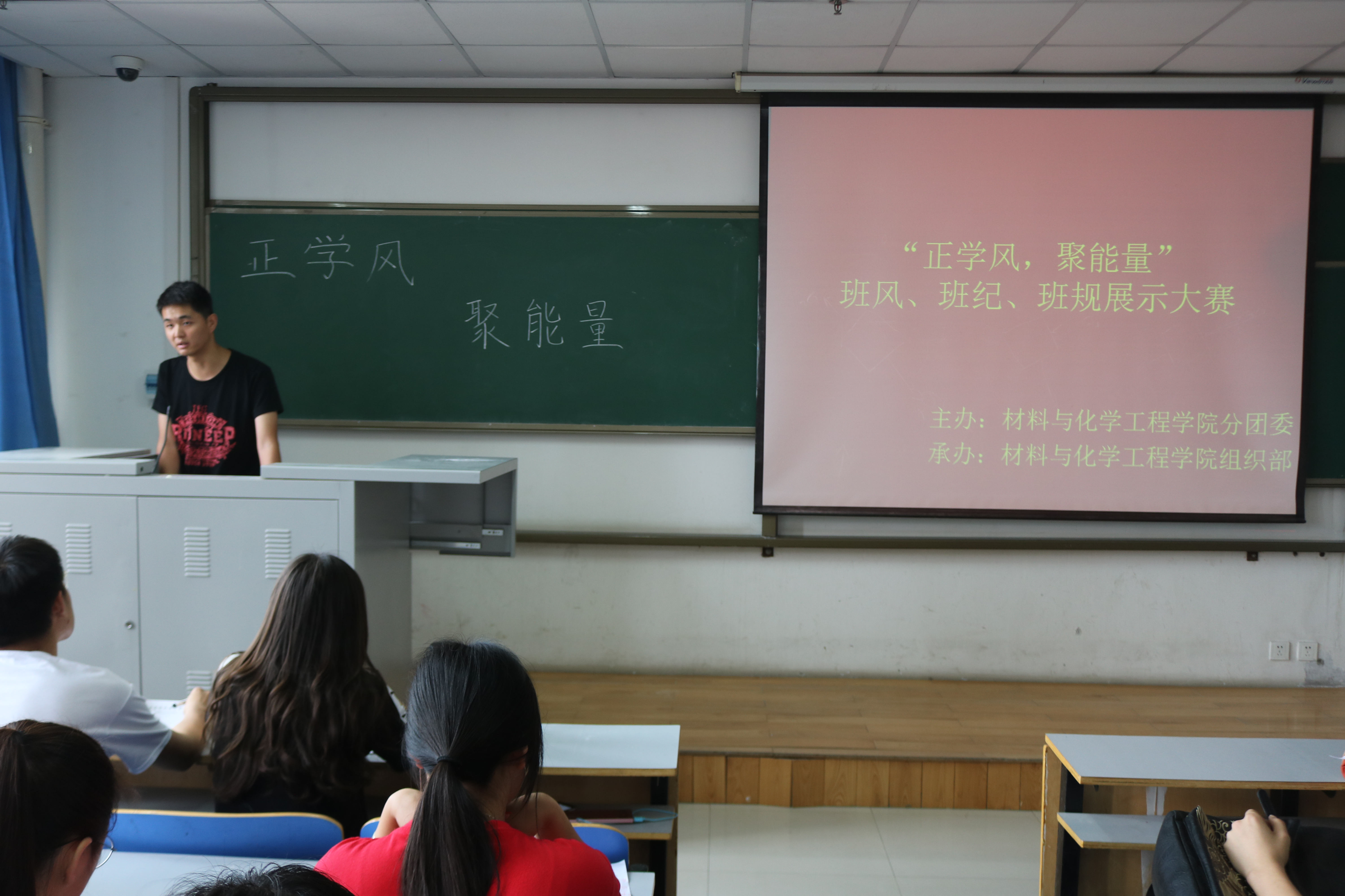 分团委主办,学生会组织部承办的“班风建设PPT汇报展示”活动于2018年5月23日在二教楼808室举行。本次活动由组织部干事韩佳鑫主持,学生会全体干事、16级、17级各班班委参加了本次活动。